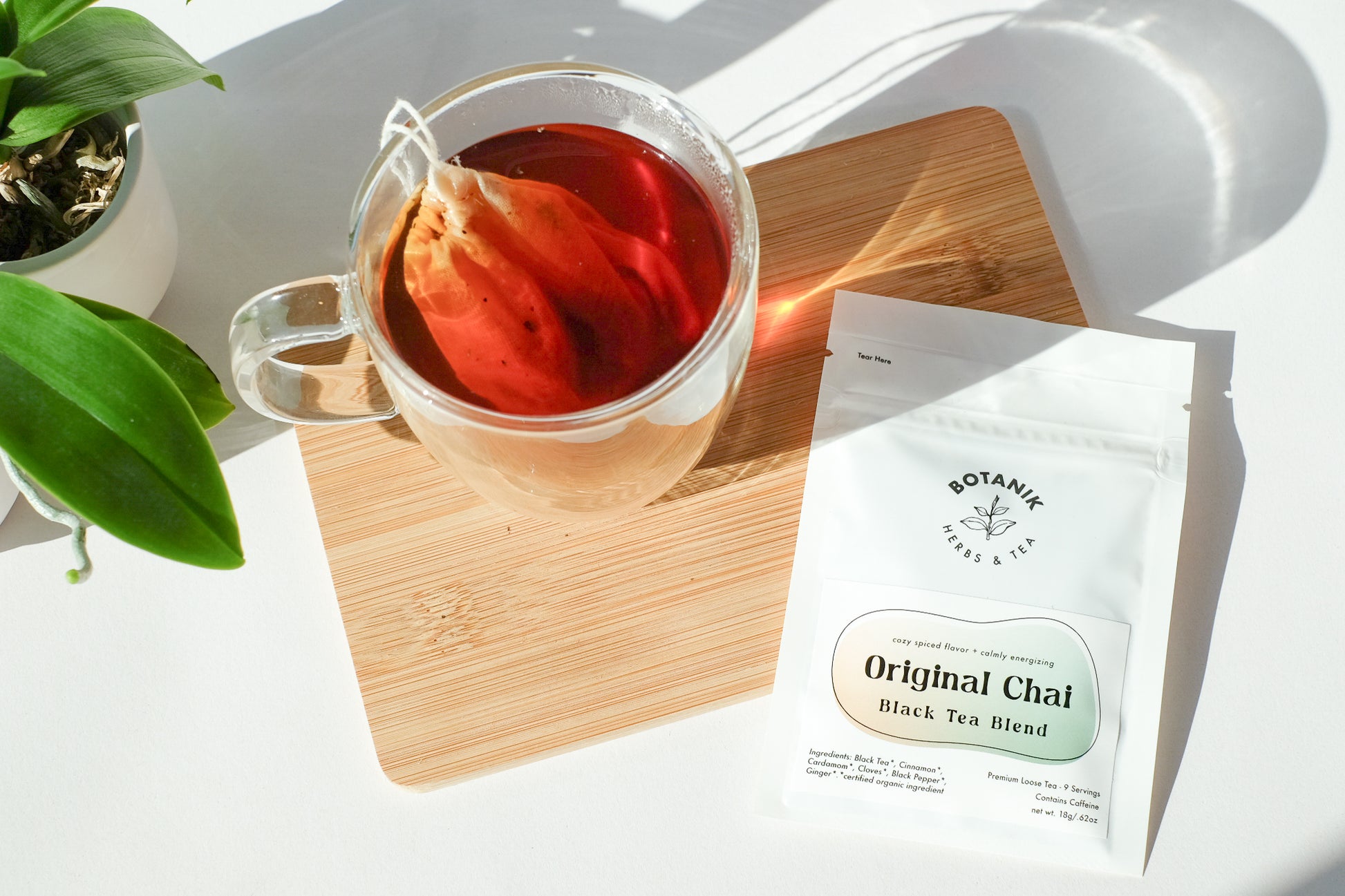 Original Chai is meticulously blended for a balanced and familiar chai flavor, then ground to maximize surface area for richness. Delicious straight up, or in traditional Indian style with milk and sugar.